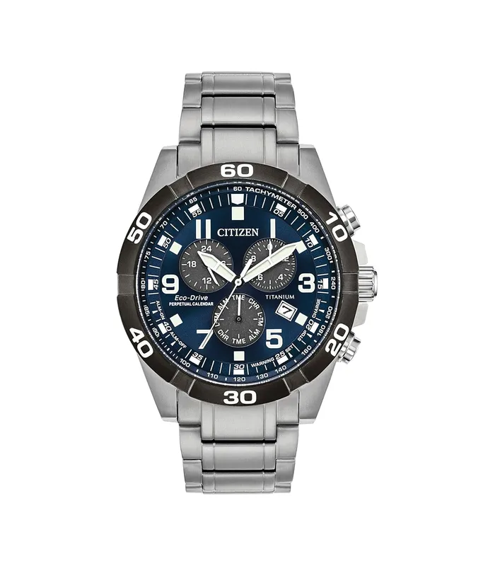 Citizen Men’s Eco-Drive Sport Casual Brycen Chronograph Watch, Super Titanium™, Perpetual Calendar, Tachymeter 12/24 Hour Time, Alarm, Date