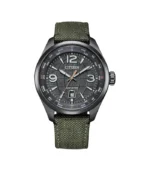 Citizen Men’s Eco-Drive Weekender Sport Casual, Gray Stainless Steel Watch, Green Nylon Strap, 3 Hand, Date (Model: AW1837-11H)
