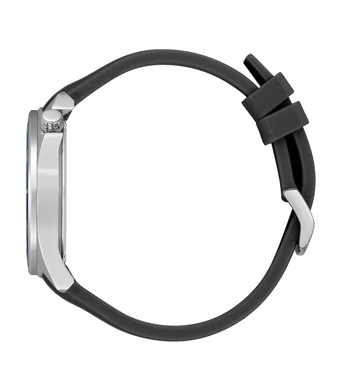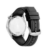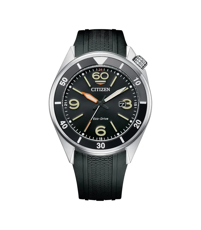 A casually styled everyday favorite complete with a brass black dial, silver-tone case and black polyurethane strap with date function. Water resistant to 100 meters. Powered sustainably by Eco-Drive technology – batteries not required.